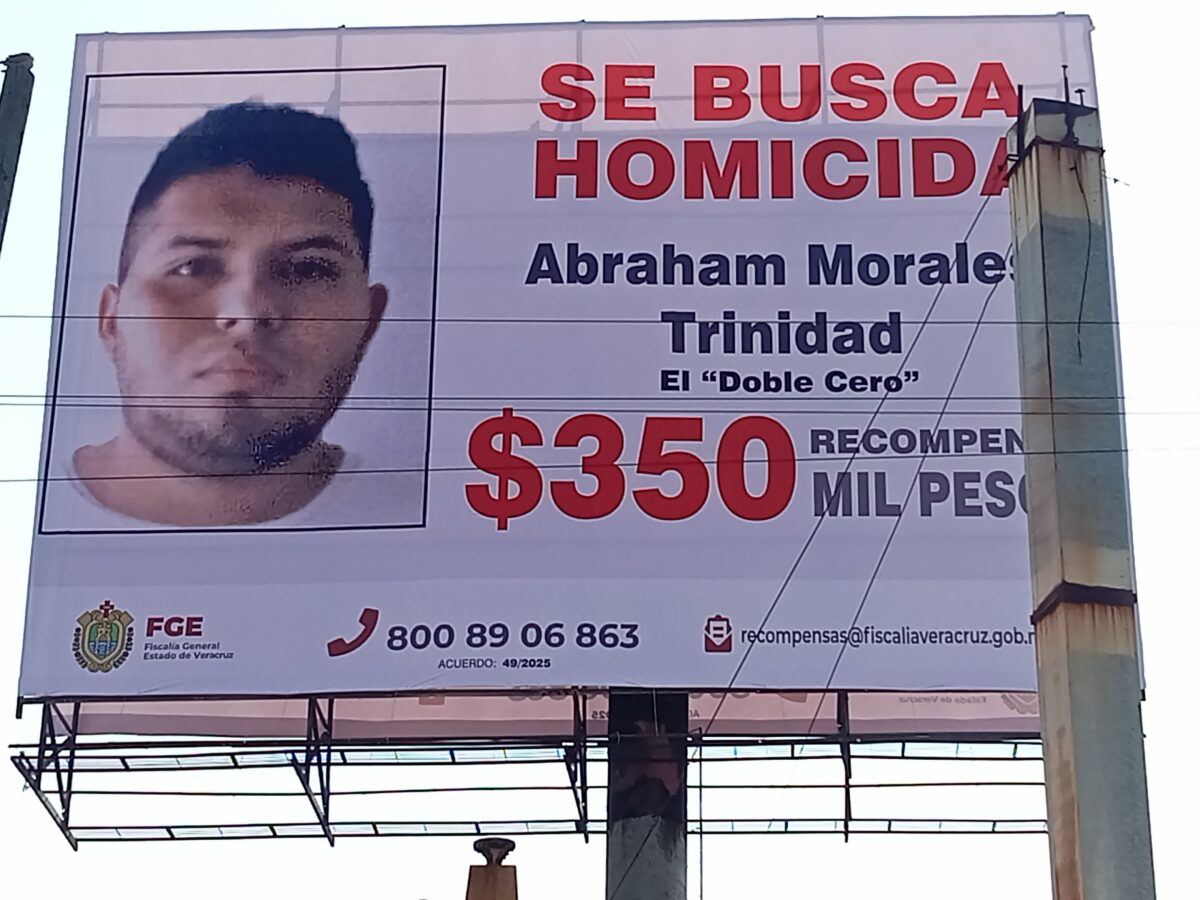 Coatzacoalcos, Ver 10 de Junio de 2025.- Tal como lo dio a conocer el pasado viernes la Gobernadora Rocío Nahle García, este martes se colocó en Coatzacoalcos el espectacular anunciando una recompensa de 350 mil pesos para quien proporcione información que ayude a detener a Abraham Morales Trinidad, mejor conocido como “El Doble Cero”.
