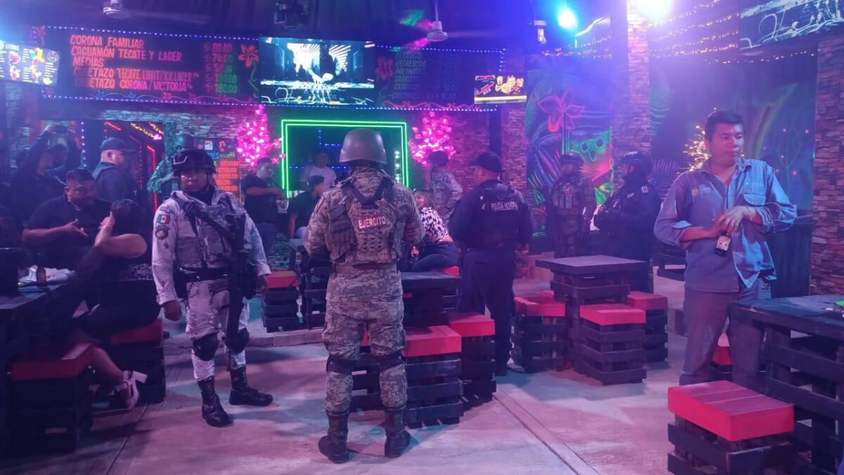 Acayucan, Veracruz.- Lunes 20 de Enero de 2025.- En un operativo conjunto realizado la noche del sábado, elementos de la Secretaría de la Defensa Nacional (SEDENA), la Guardia Nacional del tercer batallón y la Secretaría de Seguridad Pública (SSP) llevaron a cabo una serie de inspecciones en bares y cantinas de los municipios de Acayucan y Coatzacoalcos.