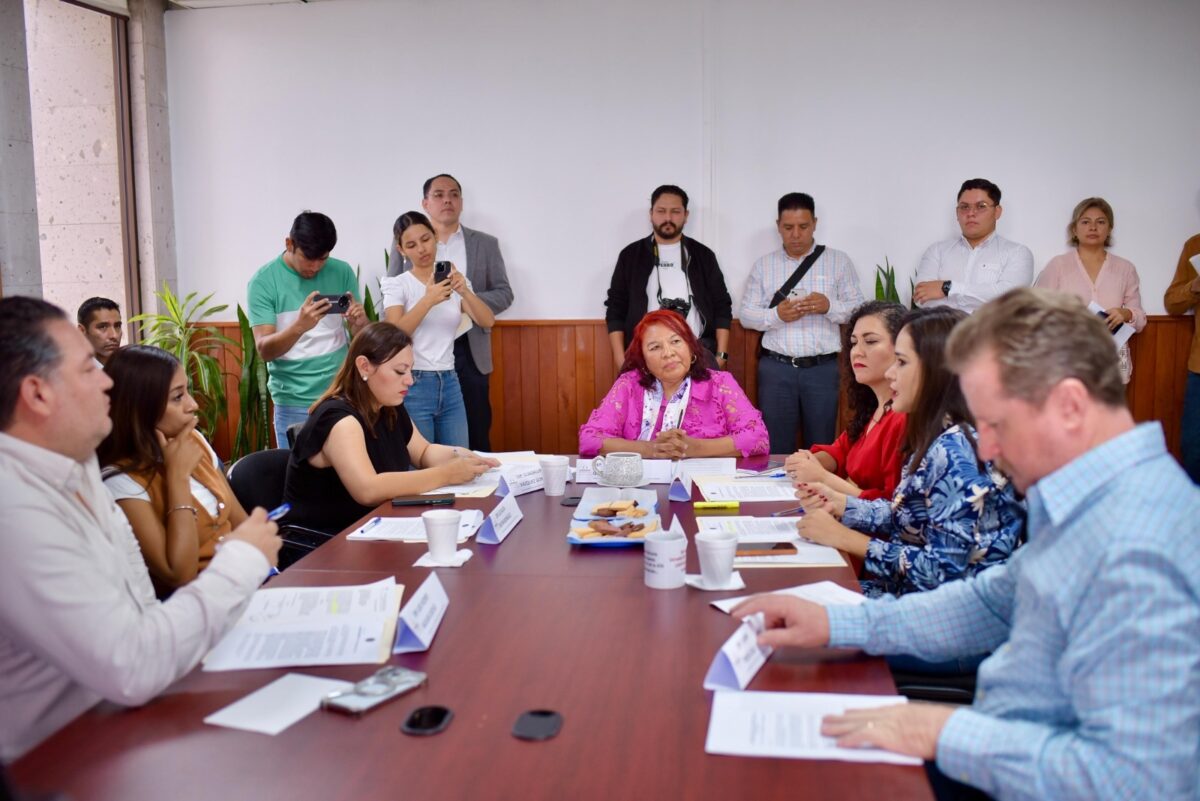 En el Palacio Legislativo celebraron sesión de trabajo las diputadas y los diputados Victoria Gutiérrez Pérez, presidenta, Guadalupe Vázquez González, secretaria, Ana Rosa Valdés Salazar, María Elena Córdova Molina, Luz Alicia Delfín Rodríguez, Juan Tress Zilli y Luis Vicente Aguilar Castillo, vocales.