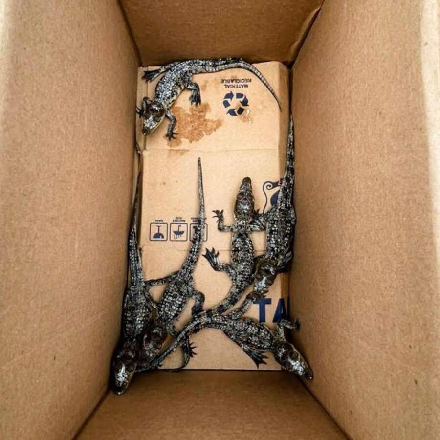 - Entre las especies rescatadas se encontraron aves y reptiles en cajas de cartón.