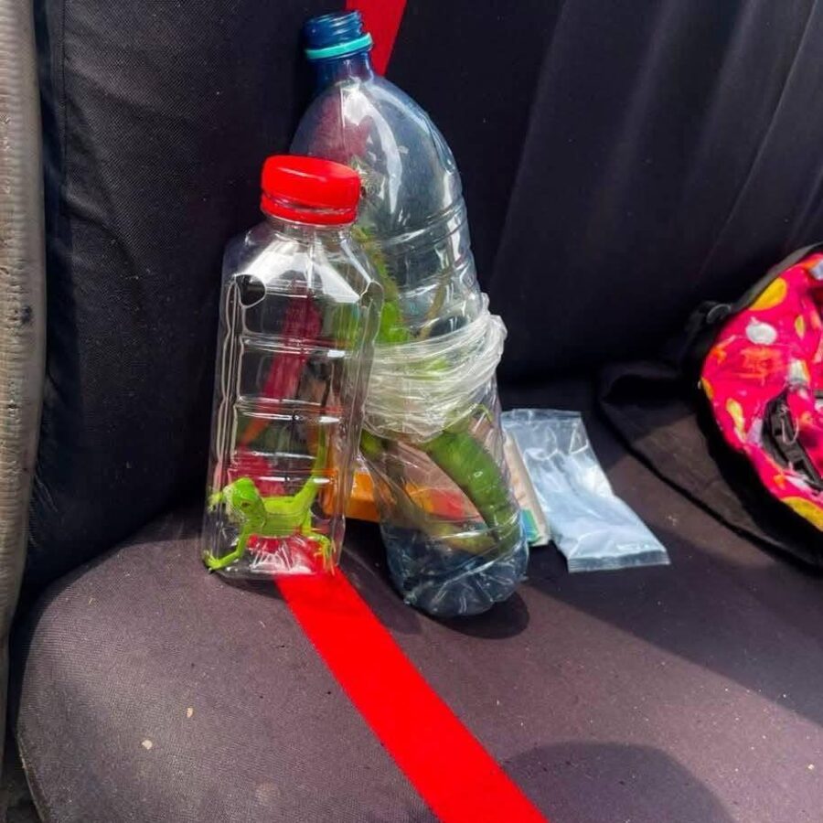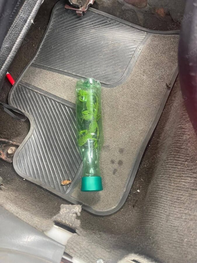 Durante la revisión de los vehículos involucrados, las autoridades localizaron a los animales en condiciones de trato indigno. Se observó a varias aves amarradas y exhibidas en varas de madera, mientras que reptiles permanecían confinados dentro de cajas de cartón y transportadoras, situaciones que representan graves riesgos para su integridad y supervivencia.
