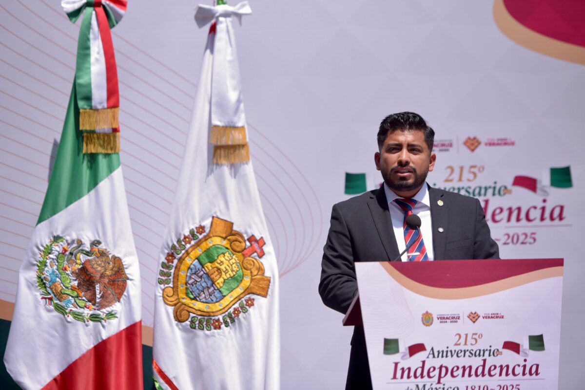 Xalapa, Ver., 05 de septiembre de 2025.- No fueron ejércitos poderosos ni ricos caudillos quienes iniciaron la lucha; fue el pueblo sencillo, fueron mujeres y hombres que dieron su vida por la vida en libertad, expresó en nombre de la LXVII Legislatura, el secretario de la Mesa Directiva, diputado Alejandro Porras Marín, en la guardia de honor del Congreso del Estado con motivo del CCXV aniversario del inicio de la Independencia de México.