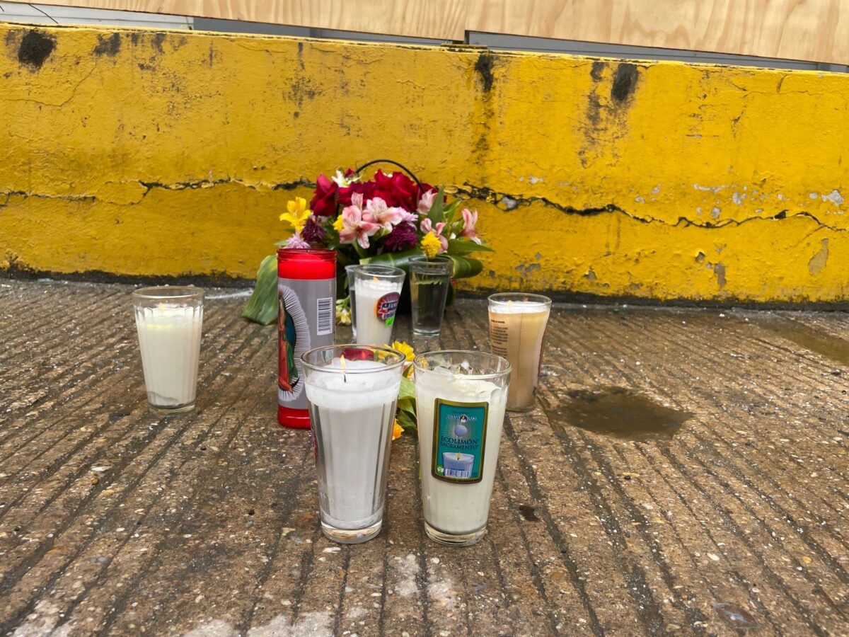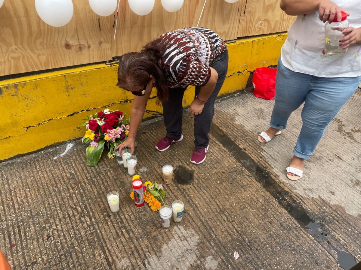 Fue a las 10 de la mañana que algunos ciudadanos colocaron veladoras, y con ayuda de un rosario rezaron. También colocaron globos blancos.