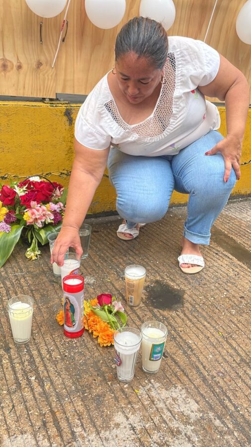 Fue a las 10 de la mañana que algunos ciudadanos colocaron veladoras, y con ayuda de un rosario rezaron. También colocaron globos blancos.