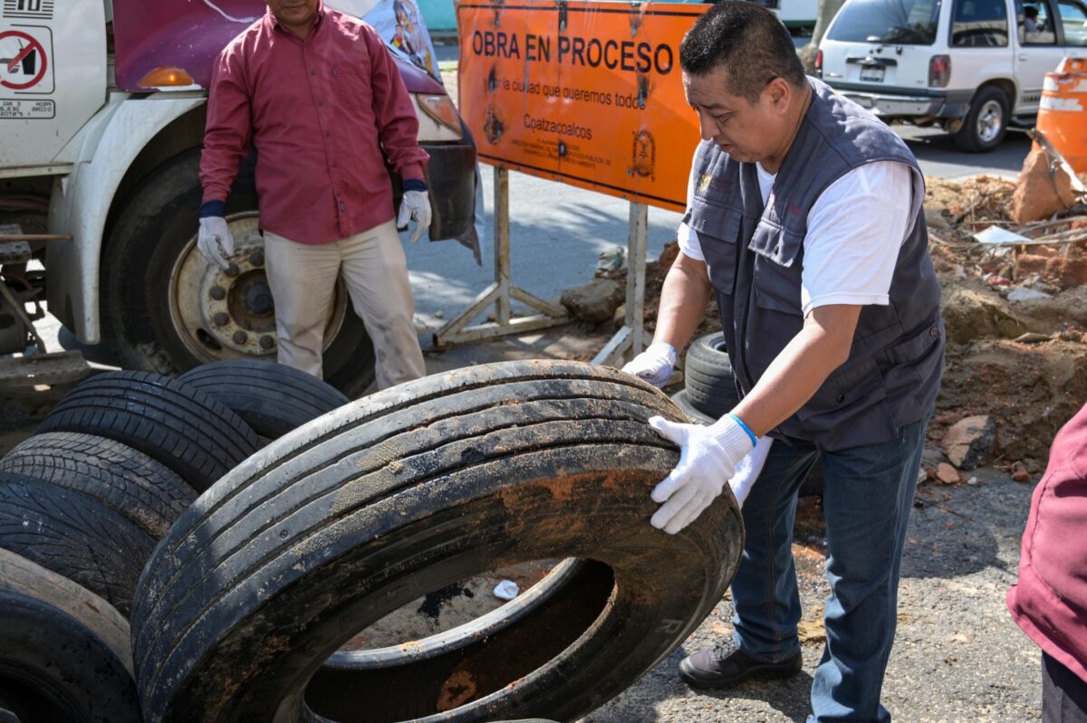 Coatzacoalcos, Ver., 25 de julio de 2025.- Este viernes, personal de la regiduría segunda, encabezada por la edil María Sandra Collins Coronel, en coordinación con las áreas de Limpia Pública, Ornatos y la Jurisdicción Sanitaria #11, llevó a cabo un recorrido por las principales avenidas de la colonia Benito Juárez Norte para recolectar llantas y cacharros que podrían convertirse en criaderos del mosquito transmisor del dengue.
