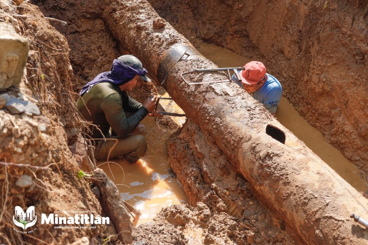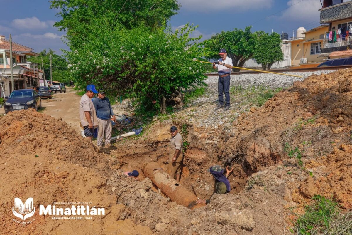 Minatitlán, Ver. – El Gobierno Municipal de Minatitlán, encabezado por la Dra. Carmen Medel Palma, realiza la reparación de 3 metros lineales en la línea de conducción de fierro fundido (Fo.Fo.) de 14 pulgadas, ubicada en la calle Altamira, entre 2 de Abril y 16 de Septiembre.