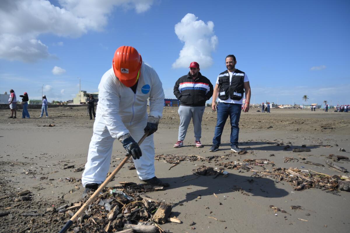 Coatzacoalcos, Ver., 22 de marzo de 2026.– En una acción coordinada entre el Gobierno de Coatzacoalcos y la sociedad civil, se llevó a cabo este sábado la Jornada de Limpieza de Playa ‘Coatza Renace del Agua’, encabezada por el alcalde, Pedro Miguel Rosaldo García, como parte de la respuesta ante el reciente derrame de hidrocarburo y en conmemoración del Día Mundial del Agua.