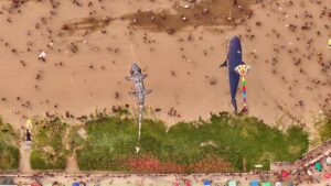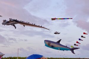 Durante los tres días del evento, chicos y grandes se sumergieron en un fascinante mundo marino, con la exhibición de papalotes gigantes de figuras como ballenas y mantarrayas, así como de personajes animados de hasta 30 metros de largo.