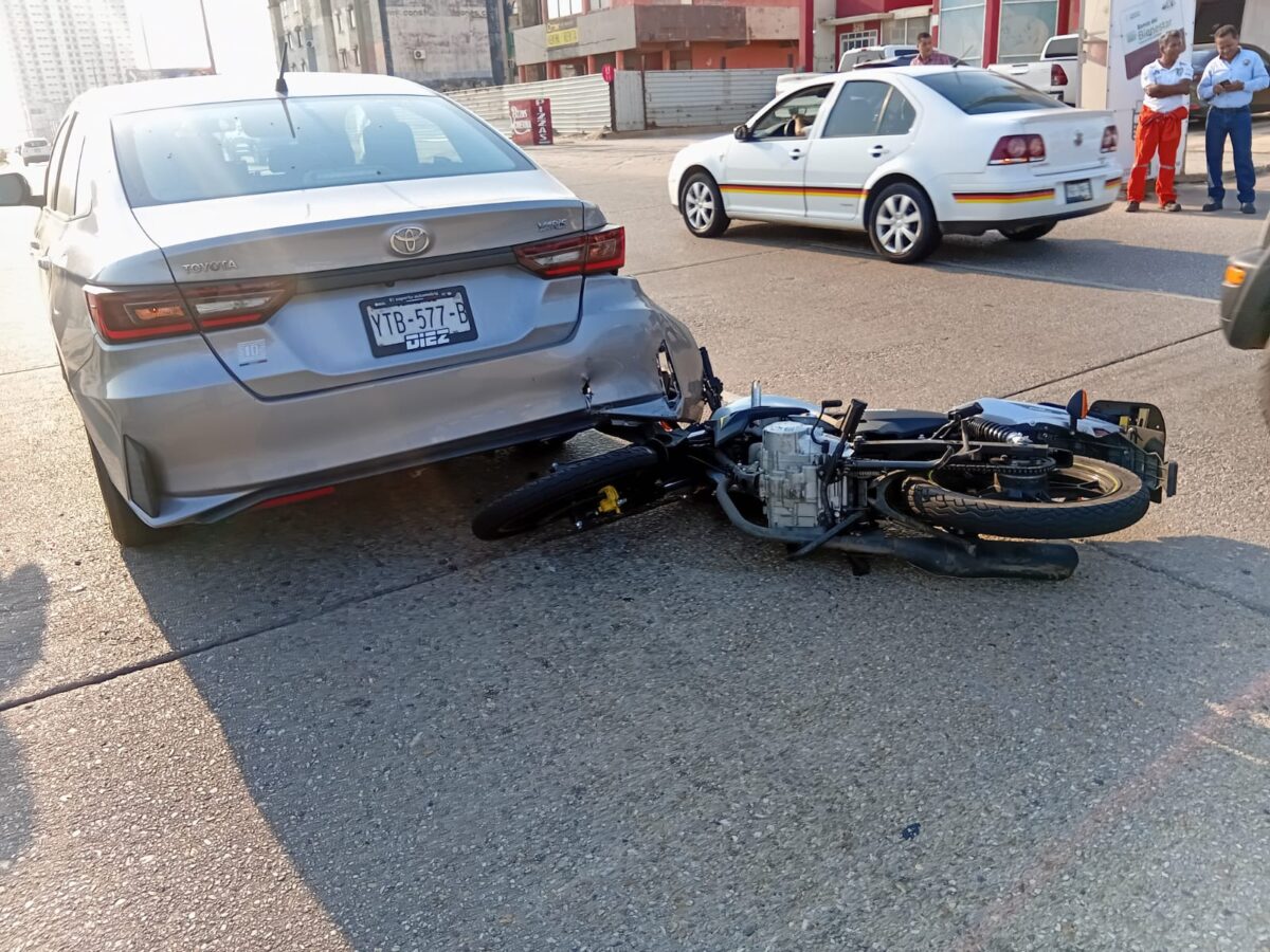 El accidente ocurrió cuando ambas unidades transitaban de poniente a oriente sobre Malecón Costero, pero el motociclista no guardo distancia y colisionó.