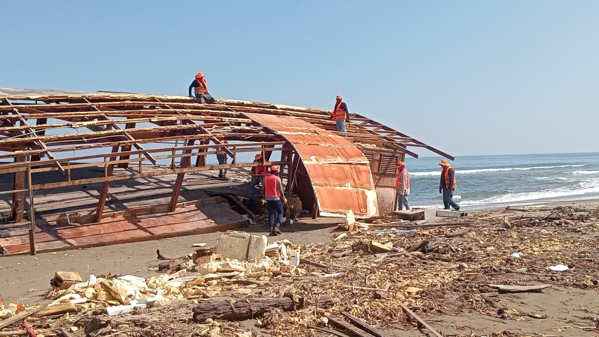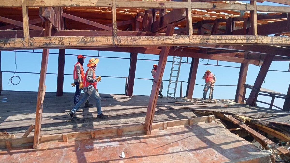 Las labores iniciaron con el retiro del techo, piso y costados de la estructura de madera, mientras que los flotadores ya fueron desmontados. De acuerdo con trabajadores, todo el material será enviado de regreso a Tuxpan. Los trabajos avanzan rápidamente.