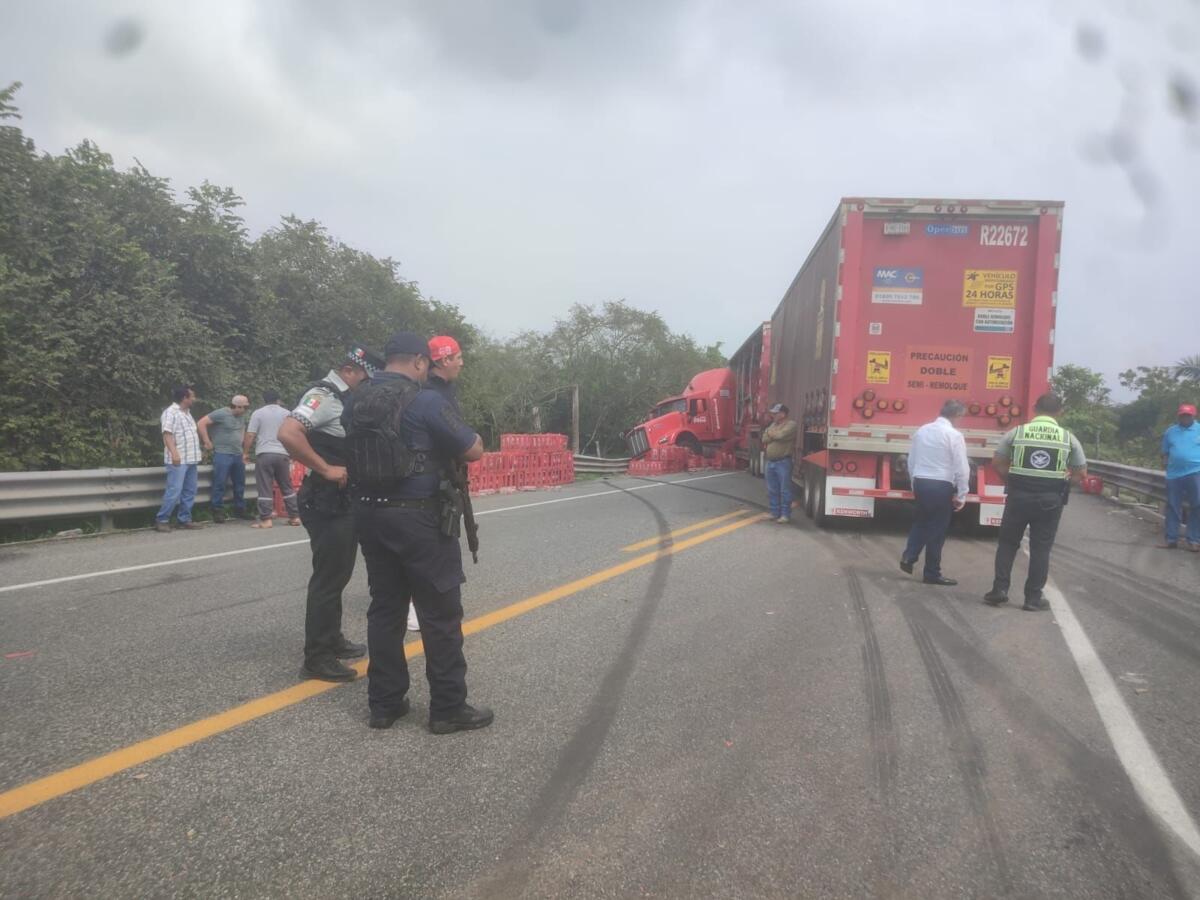 El tráiler, perteneciente a la empresa Coca-Cola, impactó la parte frontal izquierda de la camioneta. Su conductor, José Guadalupe Martínez Rodríguez, de 28 años, transportaba rejas vacías de refresco con destino a San Cristóbal de las Casas, Chiapas, y aseguró que perdió el control.