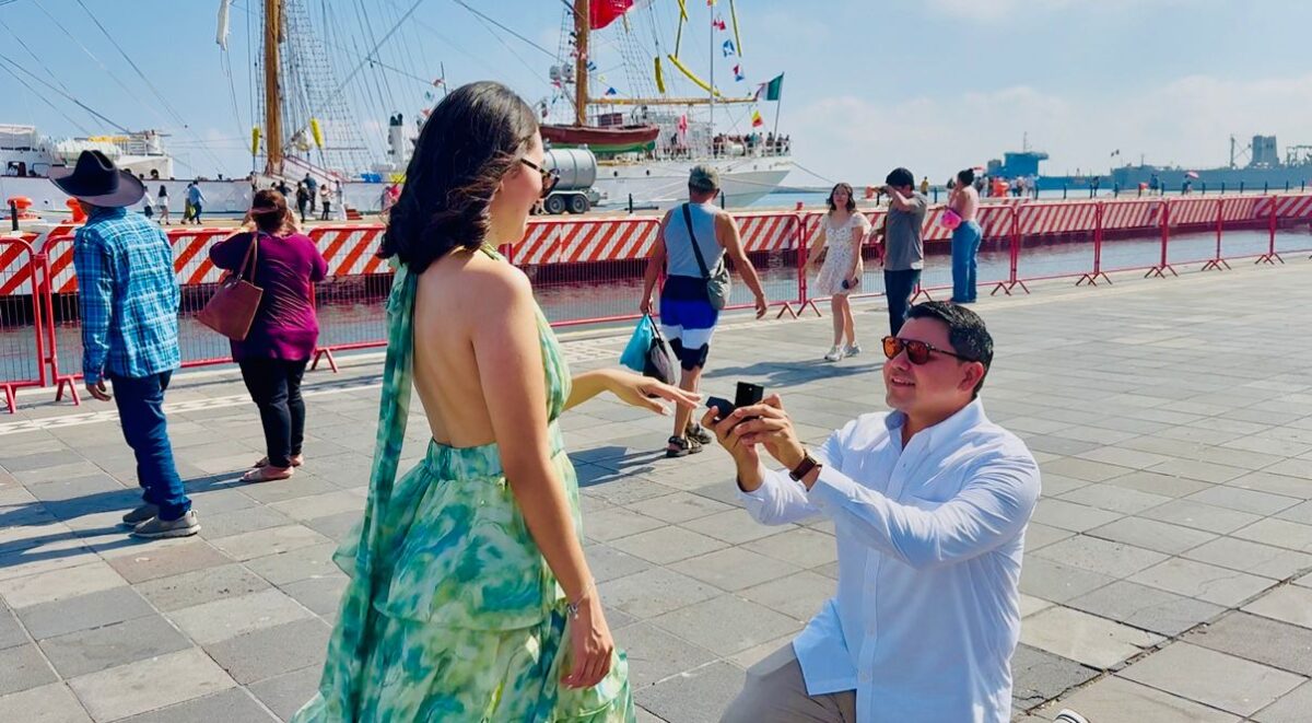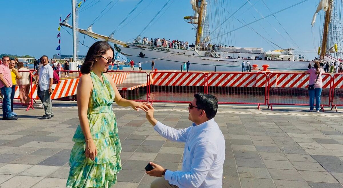 La llegada del Buque Escuela Cuauhtémoc al puerto de Veracruz se convirtió este fin de semana en el escenario de una emotiva sorpresa, cuando el cadete Levin Constantino aprovechó el arribo del llamado Caballero de los Mares para pedir matrimonio a su pareja, Fabiola.