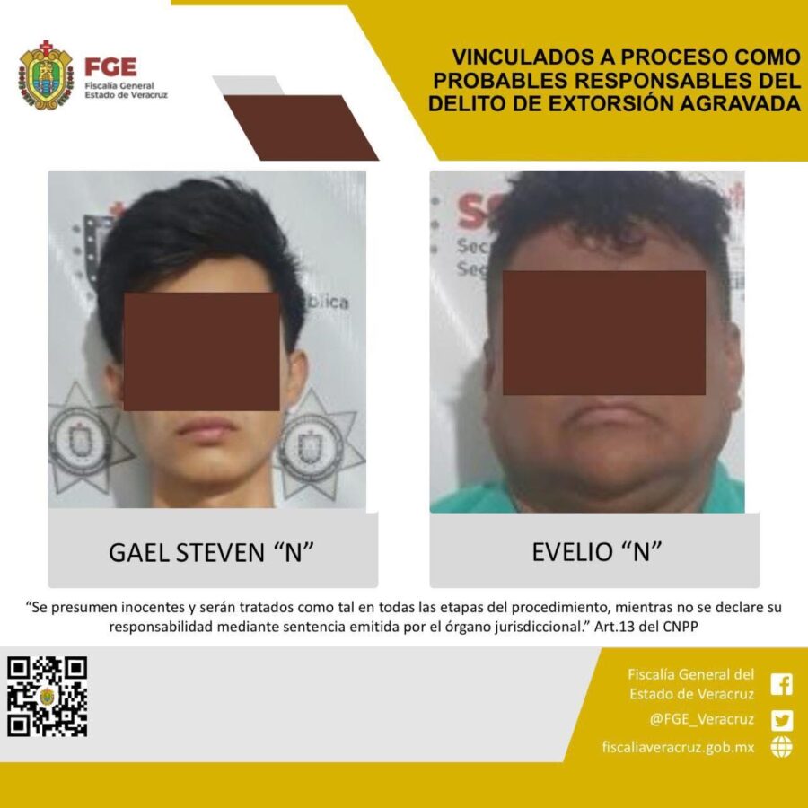 Coatzacoalcos, Ver., 25 de septiembre de 2025.-La Unidad Especializada en Combate al Secuestro y la Extorsión obtuvo vinculación a proceso en contra de Evelio “N” y Gael Steven “N” como probables responsables del delito de extorsión agravada cometido en agravio de una víctima con identidad resguardada.