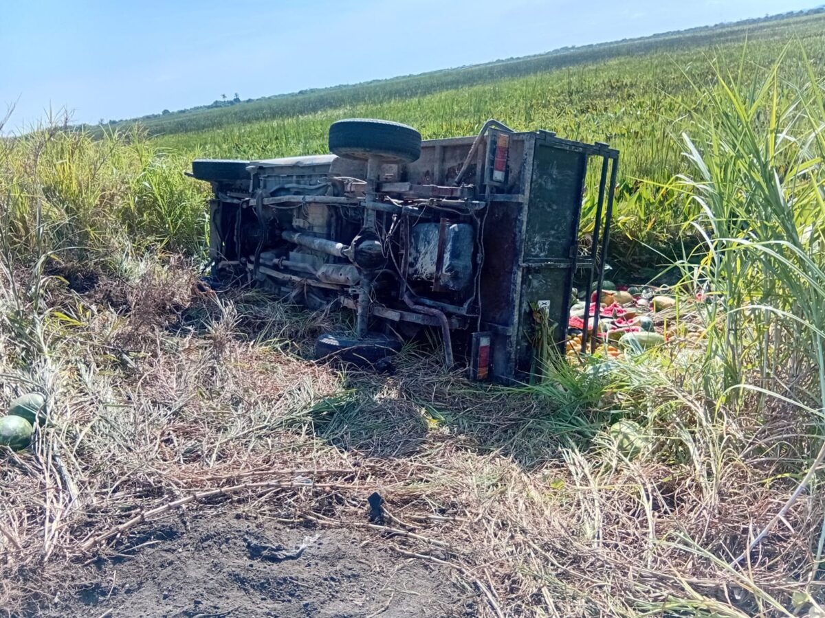 La unidad siniestrada fue una damioneta marca Ford, tipo Ranger, color azul con redilas de metal, que transportaba algunas piezas de sandia y naranjas qué al volcar, termino regado en el pantano.