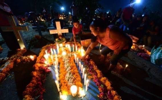 En el panteón municipal, la tradición cobra vida durante la noche. Velas y veladoras iluminan las tumbas, creando un ambiente mágico y lleno de recogimiento. Familias enteras se reúnen para limpiar y adornar los espacios, mientras la música de bandas locales, mariachis y danzas tradicionales acompañan la vigilia, transformando el cementerio en un espacio de luz, memoria y convivencia.